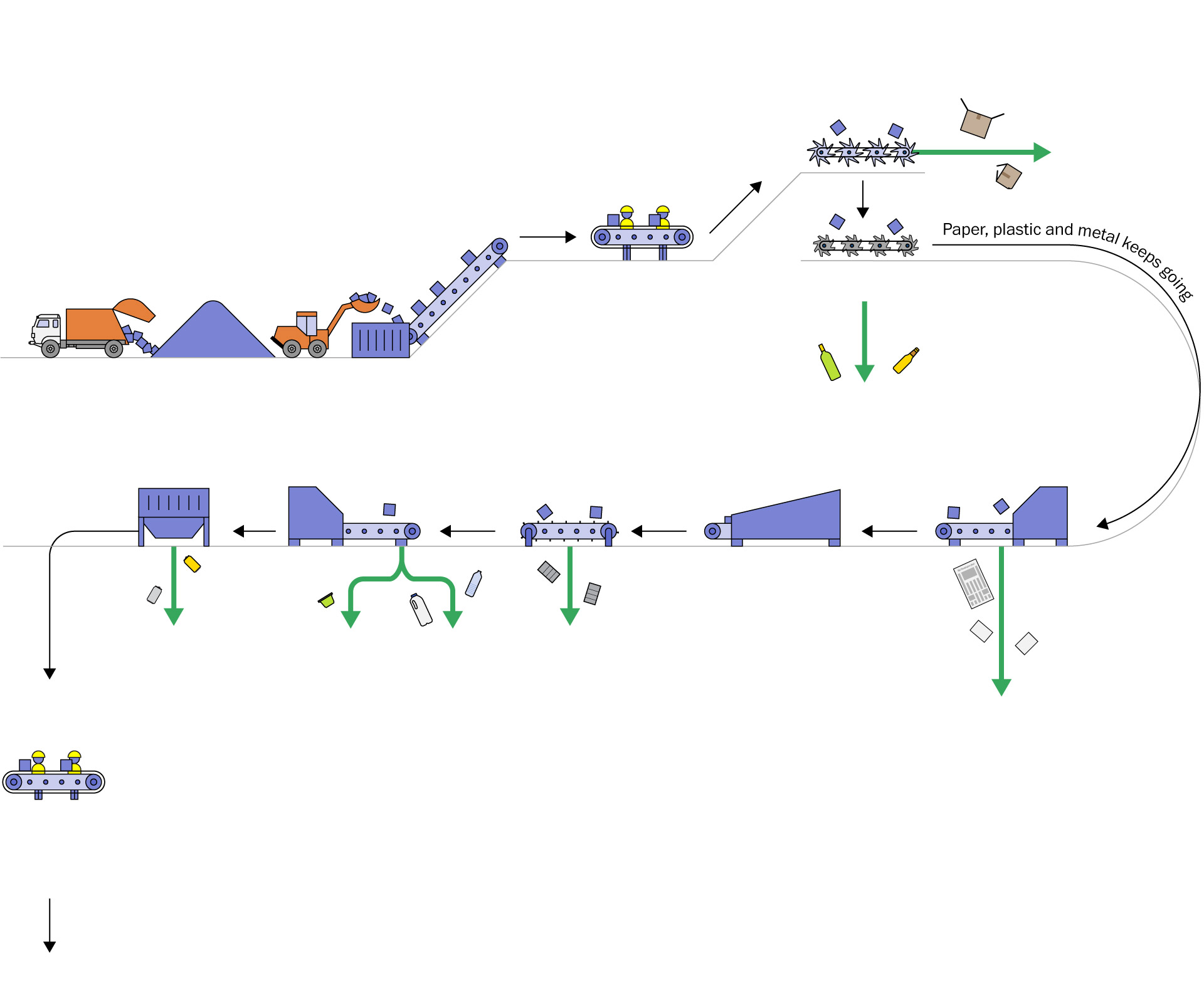 People look for any remaining recyclables before the “residue” goes to the trash.